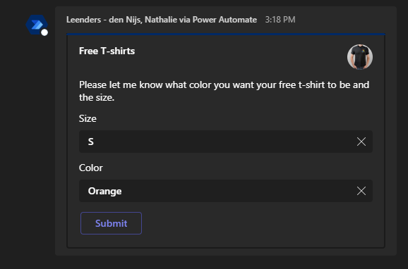 If you want to use your adaptive card as for example an approval, or you want the color choice you need to get the data that the card receives.