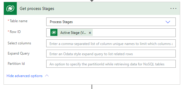 List rows – Table:Process Stages (This exists in the Default Solution)